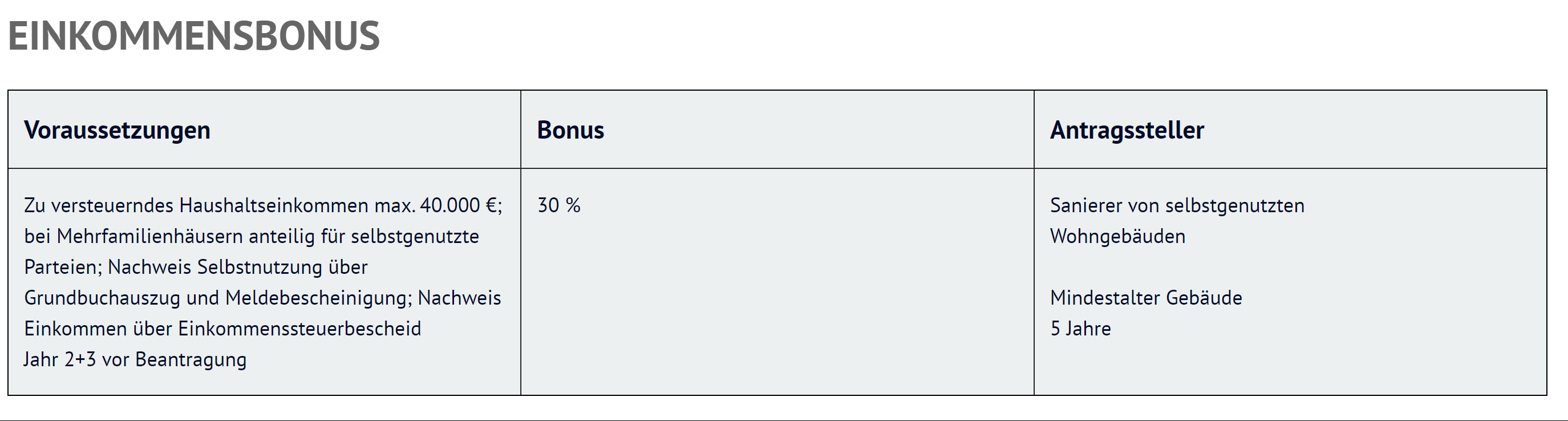 Zusätzlich zur Zuschussförderung kann ein zinsgünstiger KfW-Ergänzungskredit für förderfähige Ausgaben von max. 120.000 € pro Wohneinheit (Nichtwohngebäude max. 500 € pro m² NGF) beantragt werden. Bei selbstnutzenden Wohneigentümern mit einem Haushaltseinkommen von max. 90.000 € wird ein Zinsvorteil von bis zu 2,5 % gewährt.